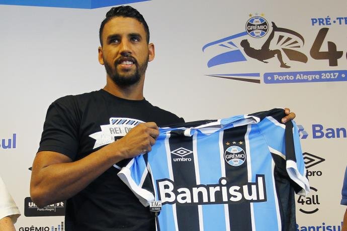 Michel Ferreira dos Santos, de 26 anos, foi apresentado oficialmente nesta sexta-feira pelo Grêmio, no CT Luiz Carvalho, e revelou que se considera um volante moderno. Além de chegar a frente e marcar, o ex-jogador Atlético-GO, com passagem pelo Porto Alegre, se colocou à disposição de Renato Portaluppi para atuar também na lateral esquerda.