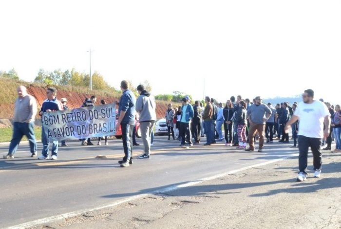 Com faixas com dizeres como “Bom Retiro do Sul a favor do Brasil” foram levantadas pelos manifestantes. Eles também foram ao encontro dos motoristas, nos veículos parados, explicando o ato e recebendo apoio da grande maioria.
