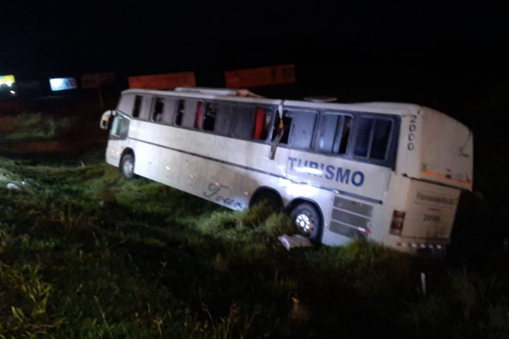 Ônibus de excursão tomba na freeway e 16 pessoas ficam feridas