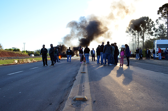 Agricultores realizam protesto na BR-386 em Bom Retiro do Sul