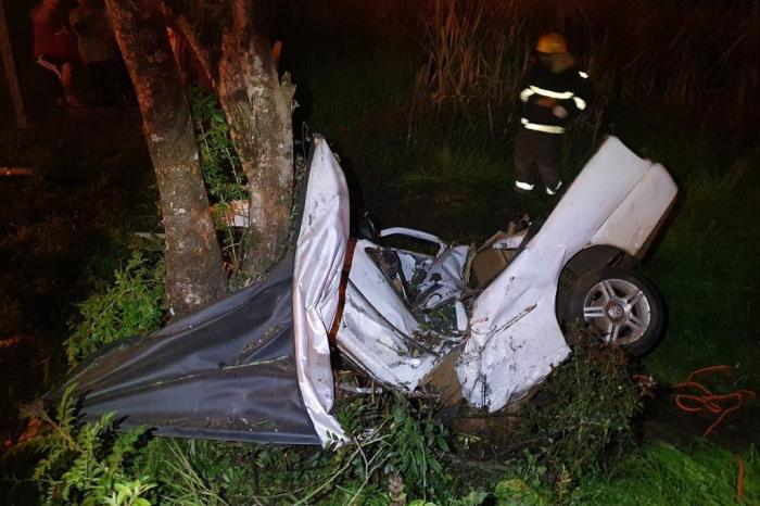 Três jovens morrem após carro colidir contra árvore em Candelária