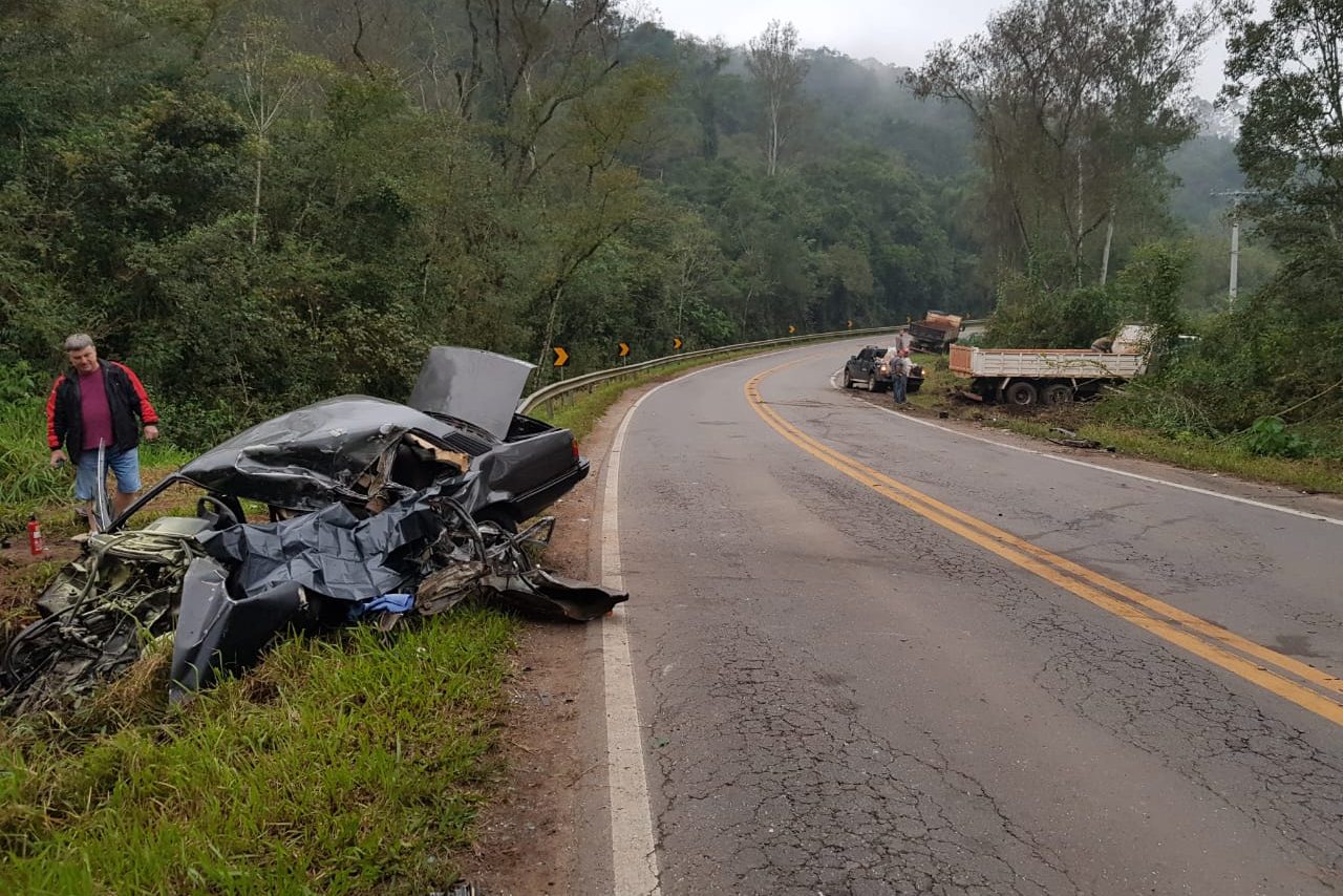Caminhão tomba na BR-386 em Paverama, após motorista possivelmente ter passado mal